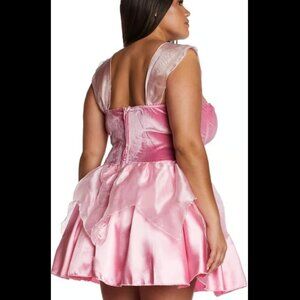 Complete Princess Look: This costume set includes a mini dress with a velvet bodice, organza sleeves, and ruffles at the waist, along with a satin skirt and a tiara for a regal appearance.