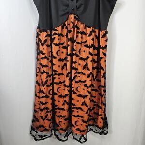 This Halloween dress is a Plus Size XXL A-Line Princess Gown with a spooky bats design, perfect for celebrating the holiday. The dress features a layered design with a midi length and is fully lined for comfort and quality. The Halloween theme adds a fun and festive touch to the overall look, making it a great option for any Halloween party or costume event.