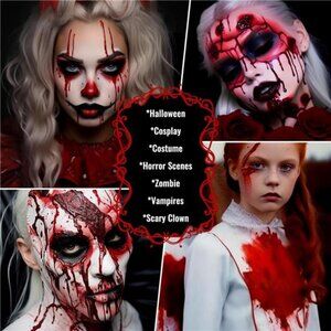 🧿Versatile For All Occasions: Prefect for Zombie, Vampire, Scary Clown, Monster and more Halloween makeup. Beyond just Halloween, this versatile fake blood makeup kit is perfect for SFX makeup, cosplay, theatrical events, movie productions and any other occasion where an authentic bloody effect is desired.