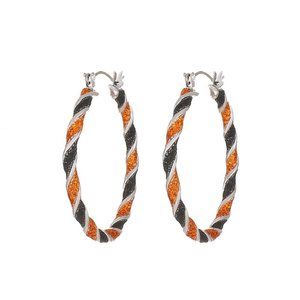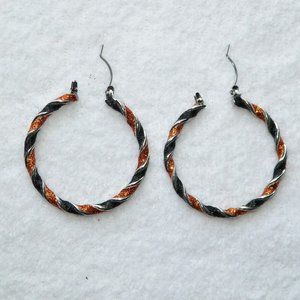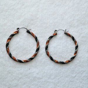 Halloween Earrings Black & Orange Glitter Silver Twist Hoop 1 1/2"
