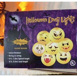 Halloween Emoji String Lights 10 Indoor/Outdoor NIB Scary Monsters
