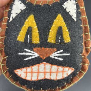 Halloween Felt Black Cat Wall Door Hanging Ornament Hand Stitched Folk Art