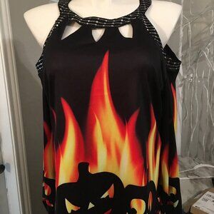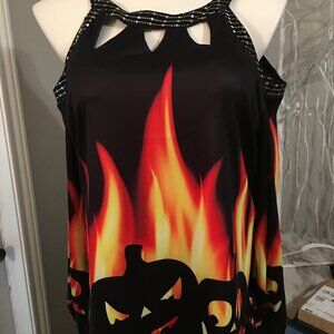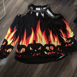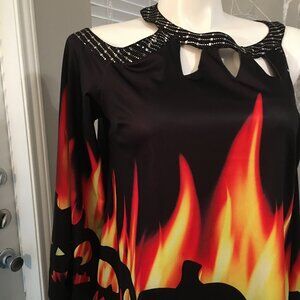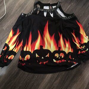 Halloween Flames Cold Shoulder Long Sleeve Top New Medium Hal1