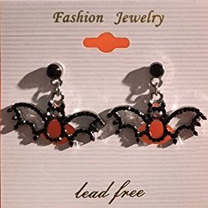 Halloween Flying Black Bat Earring / Black Bat Earring / Rhinestone Crystal