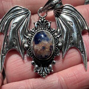 Halloween Flying Vampire Bat Sunset Sodalite Pendant Gemstone Crystal Jewelry