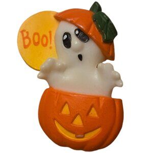 Halloween Ghost In Pumpkin Brooch Pin JOL Vintage Hallmark Jack O Lantern