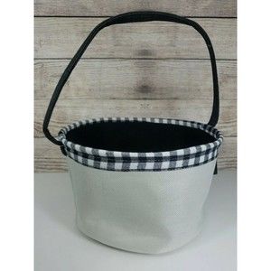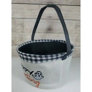 Celebrate Halloween with this charming ghost-themed trick-or-treat basket. Featuring a classic black and white design with a playful orange accent, it's perfect for collecting treats. Ideal for adding a festive touch to your holiday decor.
