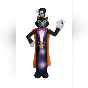 Celebrate Halloween with this Way To Celebrate Halloween Giant Magic Cat Airblown Yard Inflatable! Styled with an orange cape and bright green eyes, our magical cat inflatable makes a spooktacular addition to your Halloween decorations. Our cat wears a top hat with a bunny peeking out and holds a stack of cards for the perfect touch. For setup, just plug it in, stake it down and watch the magic unfold. Be the talk of the block with this magical inflatable! Get the entire neighborhood into the holiday spirit when you display this Way To Celebrate Halloween Giant Magic Cat Airblown Yard Inflatable,