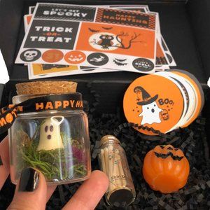 Inside this bewitching box, you'll discover a treasure trove of spooktacular surprises that are anything but ordinary. From a mischievous ghost in a jar to bewitching stickers, it's the ultimate Halloween gift that keeps on giving. Did I mention that the ghost glows in the dark? WHAAAATTT??? 🎇