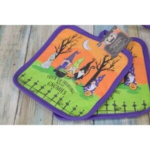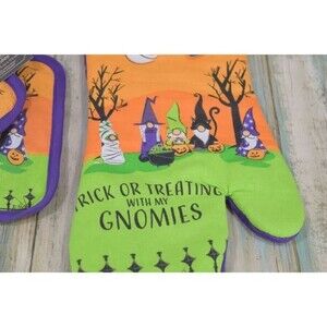 Halloween Gnome Oven Mitt Pot Holder Set NWT Kitchen Decor Trick Or Treating