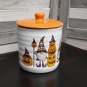 Design: The canister jar showcases a gnome dressed in Halloween attire, sitting on a pumpkin. The intricate details and vibrant colors make it a standout piece for your Halloween decorations.