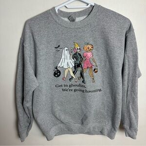 Halloween Graphic Sweatshirt Get In Ghoulies Gildan Women's size Large Gray