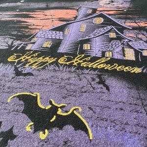 Halloween Graphic Tee Spooky Haunted House Pumpkins Bats Cotton Black 2X 18W 20W