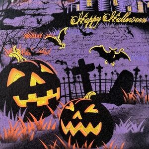 Happy Halloween spooky graveyard graphic T-shirt in black Sz 2X
