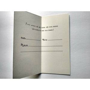 Vintage new old stock American Greetings brand Halloween party invite card. Size is 5.5 x 2.75". Opens larger with text inside. Has light age wear. Comes with original envelope that is stuck together.