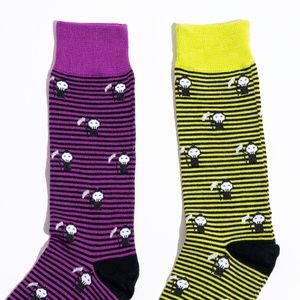 The eclectic designs of funky socks can be worn with casual jeans, school uniforms, or business formal outfits.