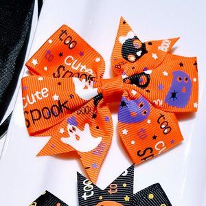 Fun and Cute Halloween Hair Bow clips ghost and cute skull print. Two colors, to coordinate with different outfits or to share with sisters, also to coordinate mother-daughter outfits for the Halloween Season and parties. Secured with alligator clips, which will not slip easily when clipped on the hair and will not hurt when taking it off. You can also clip it in other places as decoration, such as clothes, bags, and other thin items.