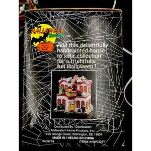 Get ready to spook your guests with this vintage Halloween Harvest porcelain house! This Halloween decoration features a haunted theater with a Haunted Theater character that will surely give your home that eerie vibe. The house is beautifully crafted and lighted, making it a perfect addition to any room in your home.