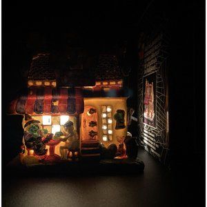 Halloween Harvest Trick or Treat Cafe Lighted Porcelain House