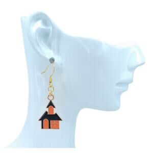 Halloween Haunted House Earrings 🎃 Spooky Cute Black and Orange Jewelry