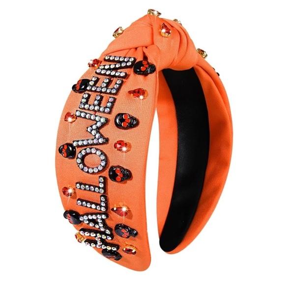 Celebrate in style with this vibrant orange headband, perfect for Halloween festivities. Adorned with sparkling embellishments, it adds a playful touch to any outfit.