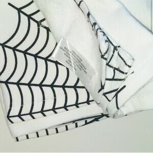 Set of 2 100% Cotton Kitchen Towels by Coterie Studio. Hocus Pocus is embroidered under a cute spooky witch hat. Edges are trimmed with a spider web design. Perfect Dish towels, hand towels if you're like me and believe everyday is Halloween!