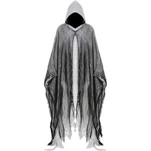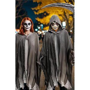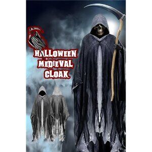 Halloween Cape Costume: Our hooded cloak is made of grey fabric with a double layer design of black mesh veil, which adds a deeper sense of horror, mystery and realism to your role. It is very suitable for Halloween costumes such as Grim Reaper, wizard, witch and vampire.