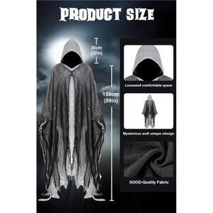 One-Size-Fits-All: This scary cloak with hood has a total length of 6 Ft (180cm) cloak and hood, loose design, suitable for adults of all sizes, ideal adult role play costume for Halloween and other events.