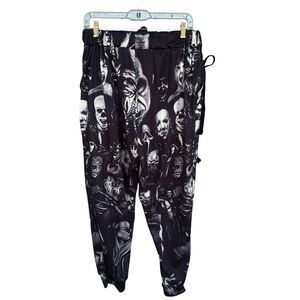 Halloween Horror Jogger Pants Womens Medium All Over Print Scary Movie Pockets