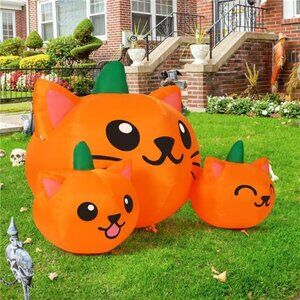 IDEAL HALLOWEEN INFLATABLE - 5ft long, Three Pumpkin Cat Head Combo with the Bright built-in LED light that is the most ideal Halloween inflatable decoration for indoors and outdoors, provides a warm and romantic atmosphere for home, outdoor, yard, door, lawn, parties and festivals!