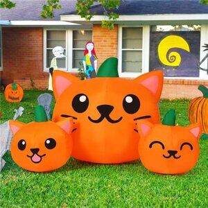 Halloween Inflatable 5FT Long Three Pumpkin Cat Head Combo with Built-in LEDs