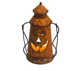 Halloween Jack-O-Lantern Metal Candle Holder with Handle Rustic Indoor Outdoor