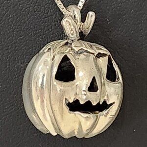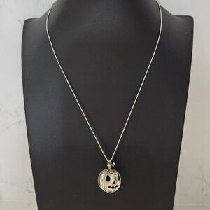 Adorable Halloween Jack-o-lantern Pendant Pumpkin Charm & Silver Chain