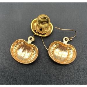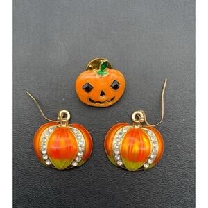 Halloween Jack-o-lantern / Pumpkin Lot Of Dangle Earrings & Tac Pin Brooch
