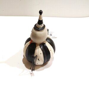 Bring some Halloween magic to your decor with this precious mini Halloween Spider Peep. This Halloween Spider Peep sitter has flat based pumpkin body painted in Halloween black and white colors with a surprised Spider head sporting an orange bow tie and a black and white cone shaped hat with little tiny wire legs (4 on each side).