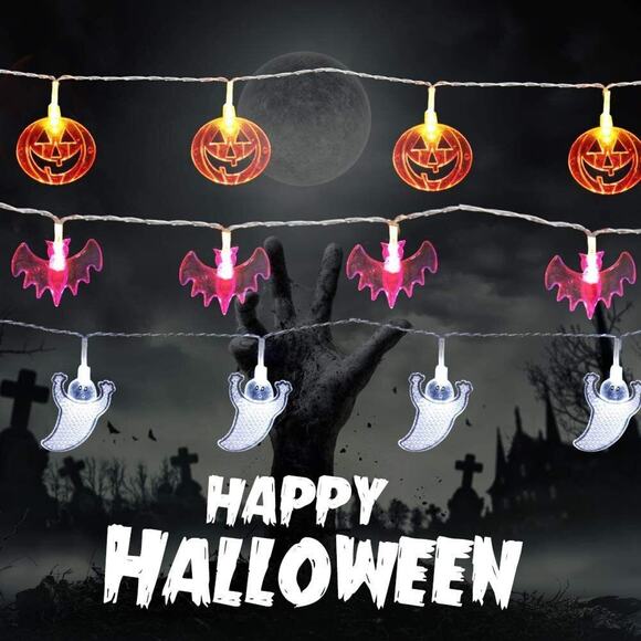 * Set of 3: 3 kind of Halloween string lights with different themes: purple bat, white ghost, orange pumpkin which makes the Halloween theme spooky and fun.