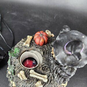 Base features a witch figurine, pumpkins, bones, and spooky accents