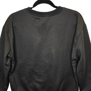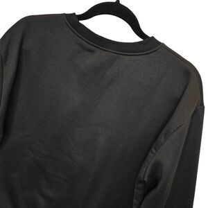 Halloween Medium Dancing Pumpkin Skeleton Black Crewneck Pullover Sweater. Black pullover sweater with dancing white skeletons with pumkpin heads on front graphic. Crewneck line. 100% polyester.