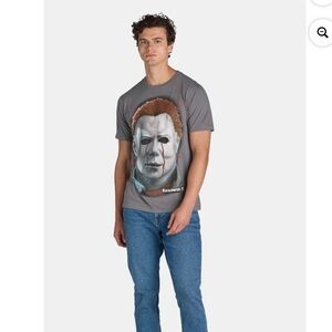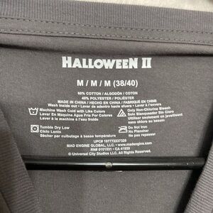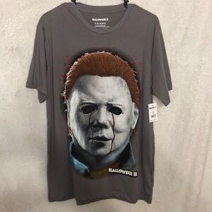Gray T-shirt featuring a Halloween II graphic design. Perfect for fans of the classic horror film.