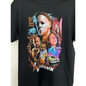 This unisex graphic tee is perfect for Halloween or for the movie buff. It is a classic black crew neck t-shirt that has the Halloween movie cast graphic across the front. It is a boxy oversized fit. It is a unisex fit and would fit more baggy on a female. New without tags.