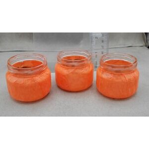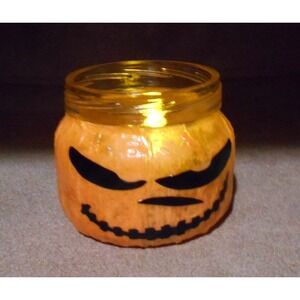 Great for small spaces! This trio of pumpkins will add a little Halloween spirit to any small space, or add to your larger display. These are baby food jars that I repurposed into Jack O'Lanterns. They fit the small battery operated tea lights (not included). Not for use with regular candles.