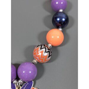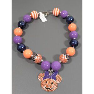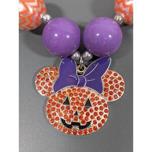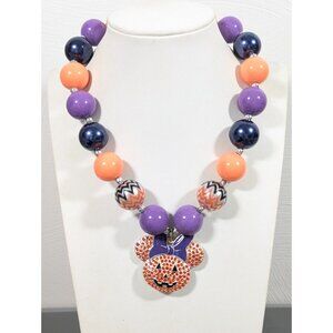 Halloween Minnie Mouse Chunky Bead Statement Necklace Orange Purple 18 in