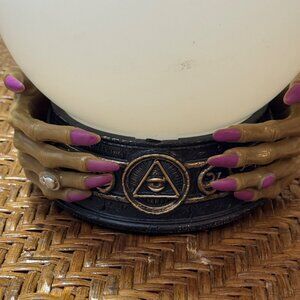 This lamp boasts a mystical design featuring witch hands holding a crystal ball. Its LED light provides ambient lighting, suitable for themed decor or spiritual spaces.