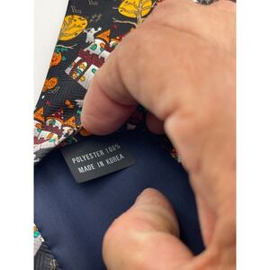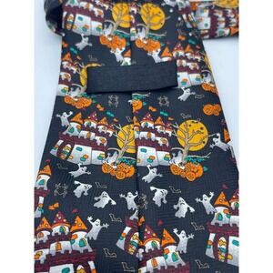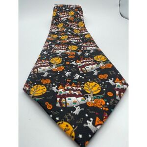 Keywords: Halloween tie, necktie, men's tie, haunted house, ghost, pumpkin, costume tie, party tie, novelty tie, festive tie, holiday tie, halloween costume, mens accessories, polyester tie