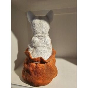 Adorable Frenchie bulldog popping out of a trick or treat bag with its sassy red bow tie. Stands 13.5" tall.