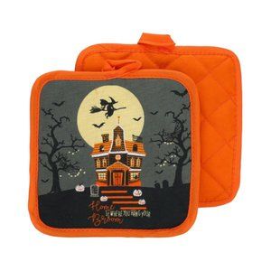 Add a little fun to your kitchen decor this Halloween! These cute 13x7-in. oven mitts and 7x7-in. potholders are perfect for hanging in the kitchen and using to grab hot items from the oven. Potholders are also great for protecting your table from hot dishes.