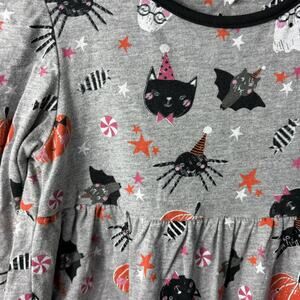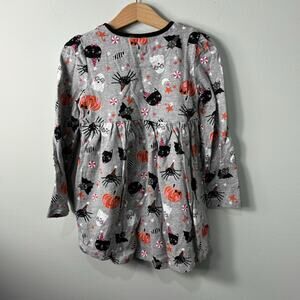 Adorable dress with an all over Halloween print that includes adorable cats, bats, pumpkins and more! Size is 4-5, GUC for normal wash wear.