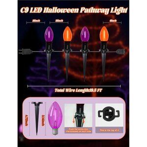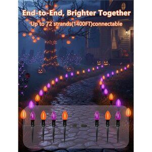 Simple Setup and Expandability:C9 halloween path lights, measuring 19.5 feet in total length, feature ten clear purple and orange bulbs that enchant all who see them. With an easy-to-install design, you can quickly set up the light stakes along pathways or in your yard. The connectable feature allows you to link up to 72 strands together, creating an awe-inspiring display without the need for multiple power sources.