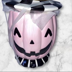 Halloween Pink & Black Pumpkin Jar Canister New