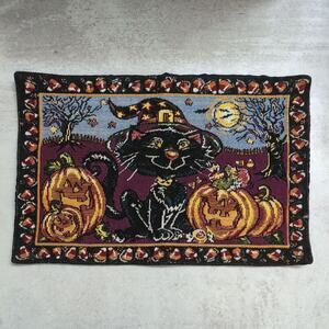 Add a spooky touch to your Halloween dinner table with these festive placemats! Featuring a charming design of black cats and pumpkins, this set of 4 placemats will create the perfect ambiance for your Halloween celebrations. Ideal for family dinners, parties, or just to get into the holiday spirit. Appear to be handmade / hand pieced together.